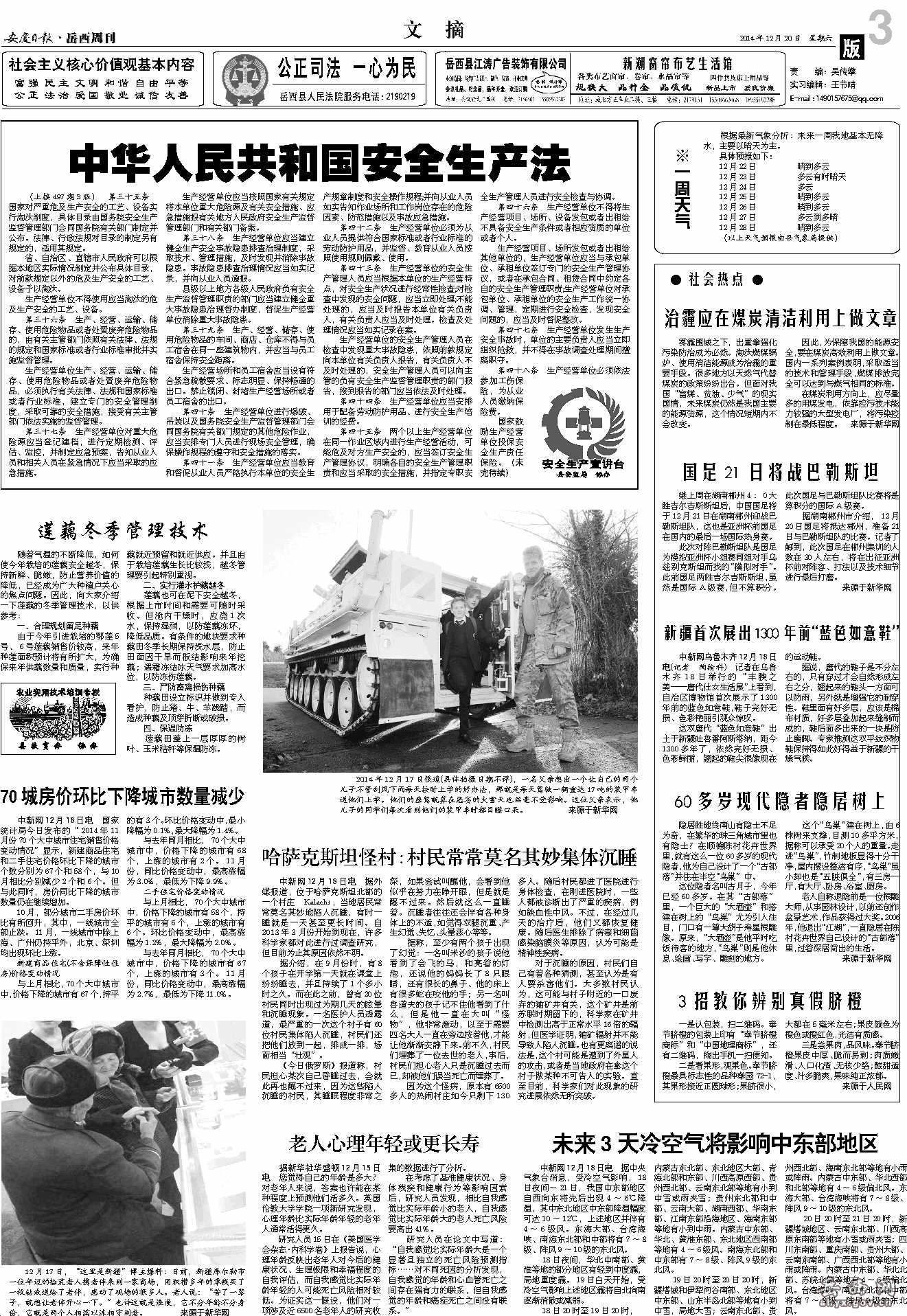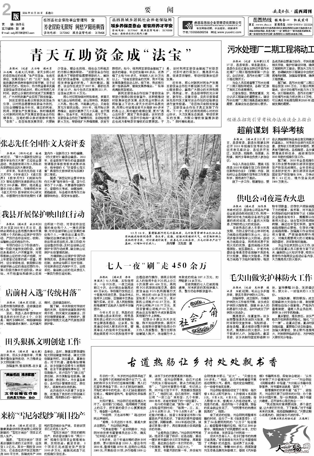 《安庆日报·岳西周刊》社版权所有 地址:岳西县大别山宾馆桂香阁(天堂镇花果山邮政局宿舍后) 周刊社编辑部电话:2183314