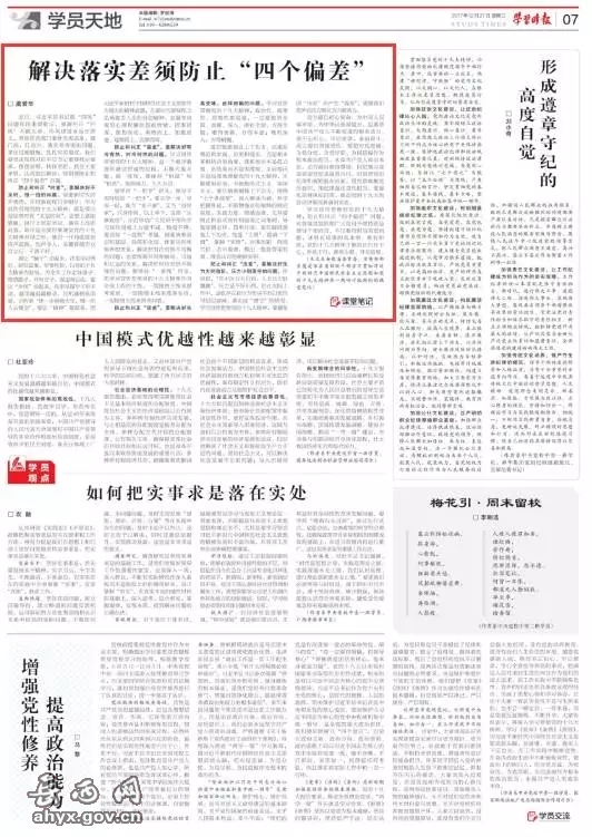 学习宣传贯彻好党的十九大精神,防止和纠正“四个偏差”问题,对各级党组织和广大党员干部特别是领导干部而言,不仅要有担当的宽肩膀,还得有成事的真本领。唯有如此,党的十九大精神才能真正内化于心、外化于行,落地生根、开花结果。(本文系作者在省部级干部学习贯彻习近平新时代中国特色社会主义思想和党的十九大精神第一期研讨班期间的课堂笔记,《学习时报》2017年12月27日第A7版刊发) |