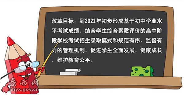 省教育厅12月8日公布 《关于进一步推进高中阶段学校考试招生制度改革的实施意见》(以下简称《意见》),相关的高中招生录取改革,将从铜陵、马鞍山两市2018年入学初一新生中开始试点,陆续向全省推进,试点之外的其他市原则上2020年实施。高中阶段学校考试招生制度改革从铜陵、马鞍山两市明年秋季入学的初一新生中开始试点,2021年迎来新中考。试点之外的其他市,可以继续按照现行的招生录取方式进行招生,原则上从2020年秋季初中一年级学生开始,在全省全面实施基于初中学业水平考试成绩、结合综合素质评价的招生录取办法。