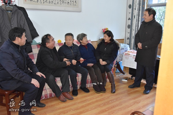 12月27日,2018年元旦即将到来之际,县教育局党组副书记、县教育工会主席徐璞,工会常务副主席储乐群一行走访慰问岳西中学退休老教师、台属丁定川同志,并为他送去慰问金和节日的问候。岳西中学副校长余德水、工会主席储秀峰等陪同。