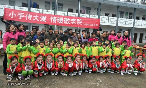 一到敬老院,小朋友们就给爷爷奶奶们献上暖心礼物:水果、糕点、水杯等,让老人们感到无比的激动和温馨。随后,小朋友们载歌载舞,为老人们表演了精彩的节目,博得老人们掌声阵阵。表演结束后,小朋友为爷爷奶奶敲敲背、捶捶腿,围着他们做游戏。最后,孩子们齐声给爷爷奶奶们送上了自己最诚挚的祝福:祝愿爷爷奶奶新年快乐、身体健康、生活幸福!