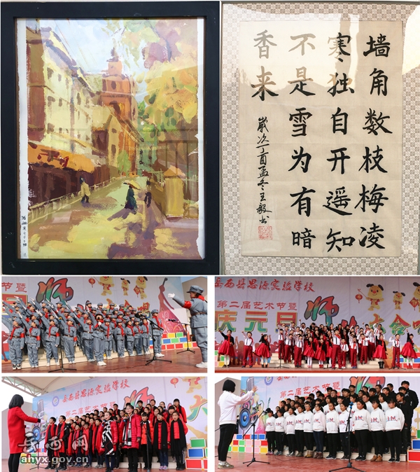 岳西思源实验学校开展第二届校园文化艺术节系列活动。该次活动以党的十九大精神为指导,活动主题为“用艺术点缀人生,让文化丰富心灵”,包括学生书画作品展、师生大合唱两部分。校长刘国中担任组长,全校师生共同参与。