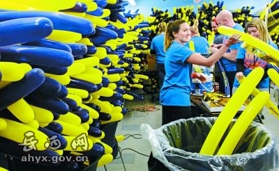 12月30日,在美国纽约曼哈顿时报广场,工作人员准备庆祝活动中用的充气棒。