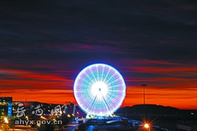 这是12月30日在法国马赛欧洲文明博物馆附近拍摄的晚霞映衬下的摩天轮。(照片均为新华社发)