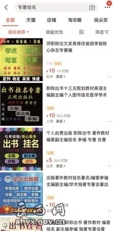 “专著挂名”的淘宝搜索页面