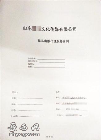 为了弄清“挂名主编”交易全过程,北青报记者尝试向卖家索要合同。一位店家的客服向北青报记者展示了其通用模板的 “作品签约合同”。在这份作品出版代理服务合同中,北青报记者看到,乙方为“山东×××文化传播公司”,甲方授予乙方通过____出版社(第三方)办理本作品的有关出版业务。乙方承诺本作品为一书一号,甲方可要求作品的担任(著、主编),并可提出位置、署名方式、出版时期等具体要求。合同中还写明了若乙方提供假书号,将向甲方一次性支付2倍的本书出版服务费用作为违约金。