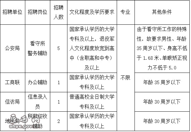 县地税局:①专业为计算机、财务相关者;②在册建档立卡贫困户家庭成员;③学历高者;