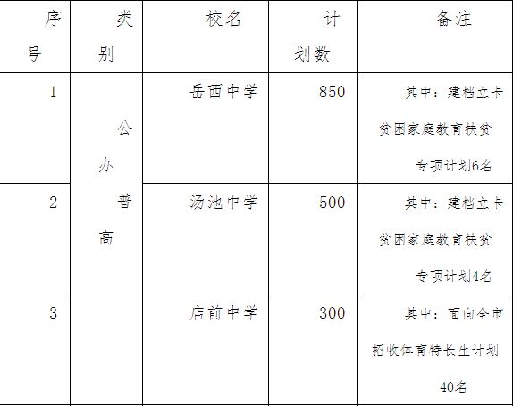 根据省、市2017年中考中招工作要求及市教体局下达我县高中阶段招生计划2960人,结合我县实际,经研究,决定我县2017年各高中招生计划分配如下: