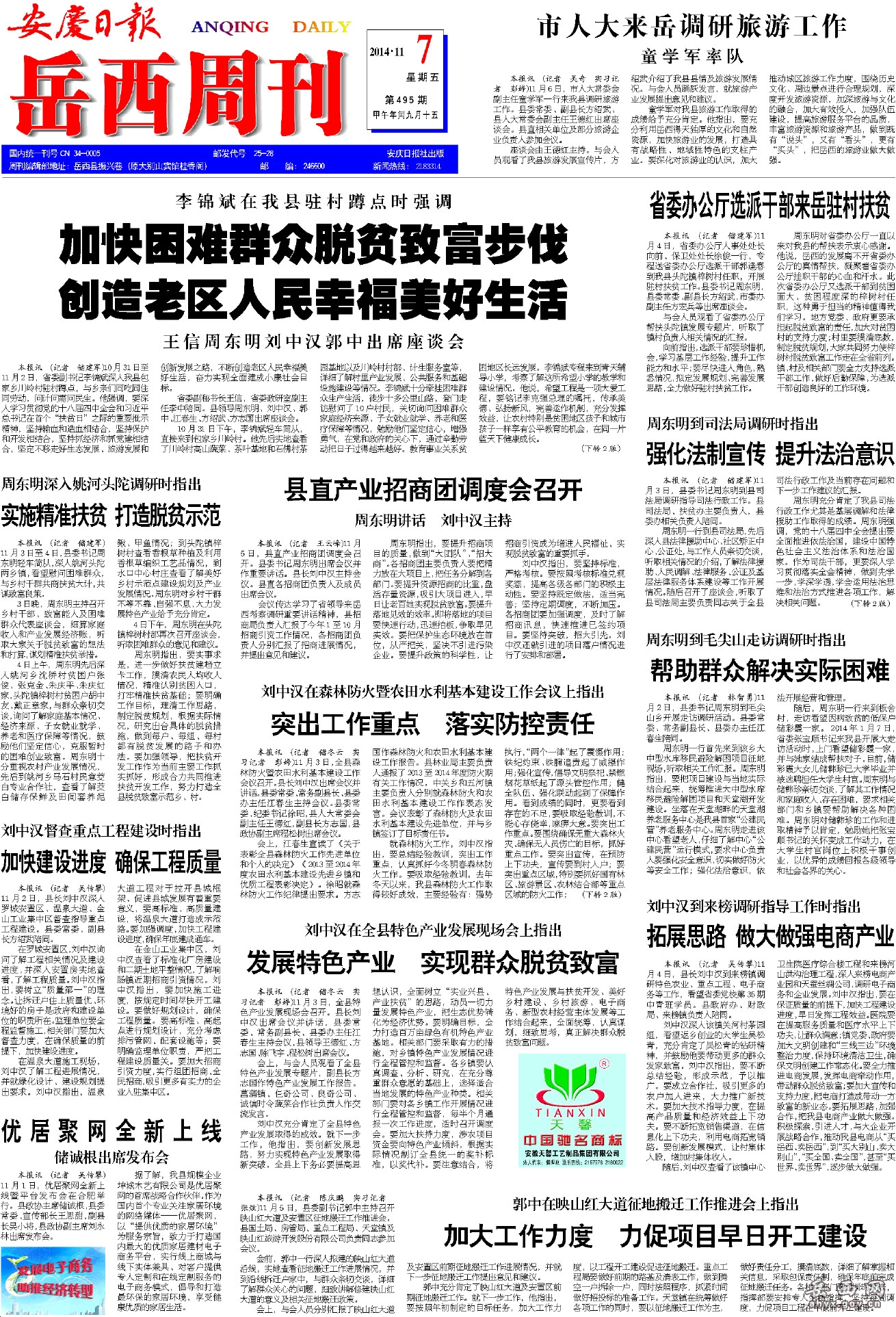 岳西周刊第495期电子版 2014-11-13 8:07:13