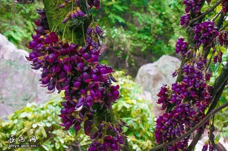 正是岳西这种亚热带大陆性季风湿润山地气候,因亚热带气候环流系统的控制,热量丰富,雨量充沛,植物茂盛,四季分明,从而孕育出天峡风景区上千株油麻藤花争先怒放这一奇观。