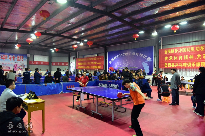 365bet在线娱乐讯(记者 王璐)为庆祝党的十九大胜利召开,深入贯彻实施全民健身运动计划纲要,丰富全县职工群众文化生活,11月10日,岳西县2017年职工乒乓球比赛开幕。县人大常委会副主任方国安出席开幕式,并宣布比赛开始。县总工会负责人出席活动。
