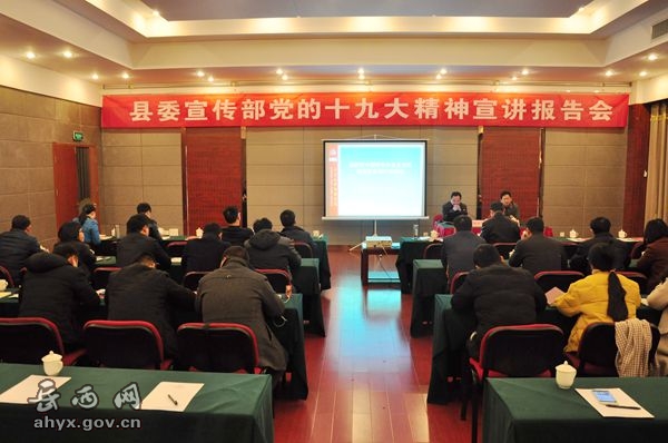 365bet在线娱乐讯(记者 储海霞)11月19日,县委宣传部党的十九大精神宣讲报告会举行,会议特邀县委党校教研室负责人宣讲十九大报告,县委宣传部机关、文明办、周刊社、文联、365bet在线娱乐全体党员和职工聆听报告。