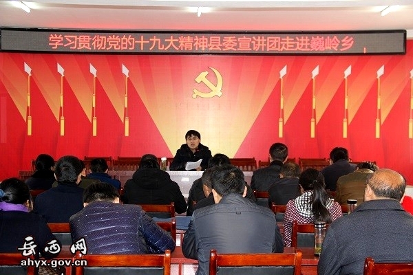 365bet在线娱乐讯(通讯员 徐元兵)11月24日,县委宣讲团走进走进巍岭乡,对党的十九大精神进行报告宣讲解读,巍岭乡全体党员干部参加了聆听。